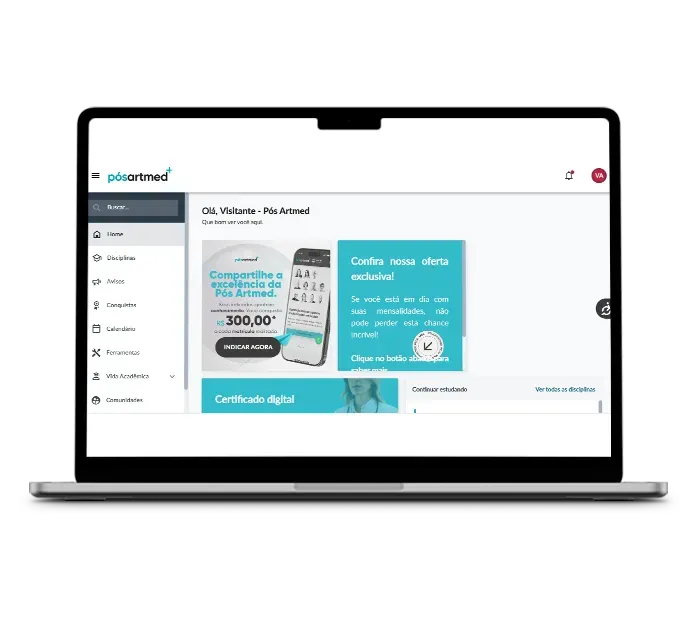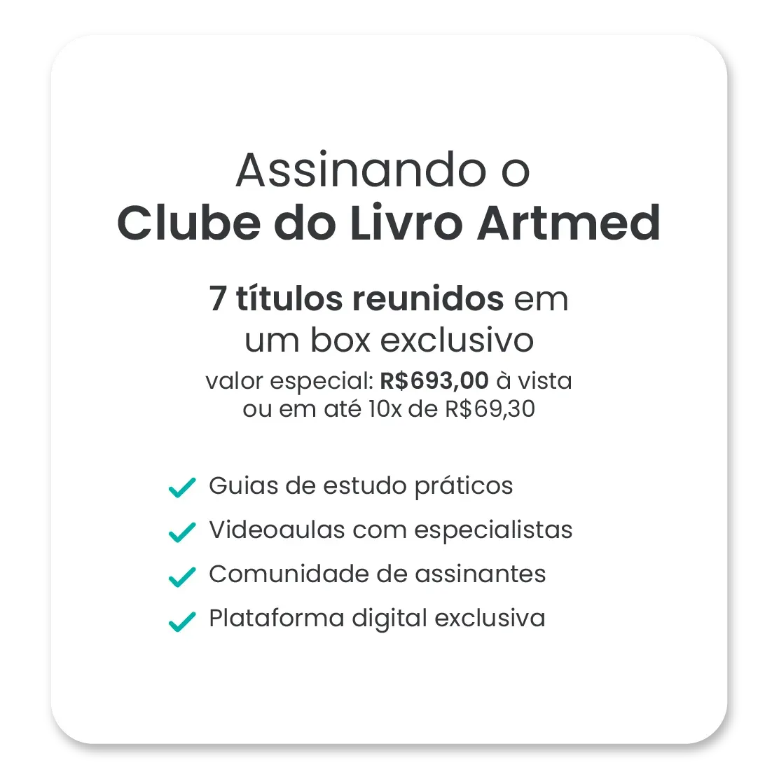 Todo o conteúdo do Clube do Livro Artmed está reunido em um só ambiente digital. Na plataforma exclusiva, você acessa os materiais complementares, organiza seu percurso de estudo, acompanha as lives e participa dos fóruns, tudo em um único lugar.